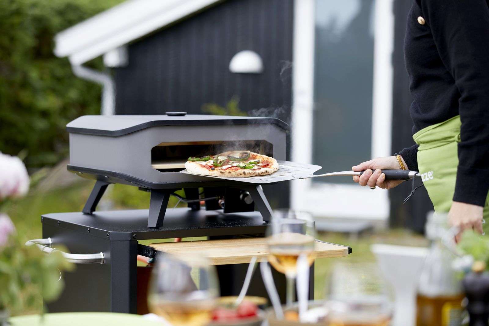 Deze pizzaoven is ontworpen om perfect te passen op de Cozze-trolleytafel, een van de andere Cozze werkbanken of in een volledige buitenkeuken. Zo geniet je van een complete en professionele kookervaring in je eigen tuin!