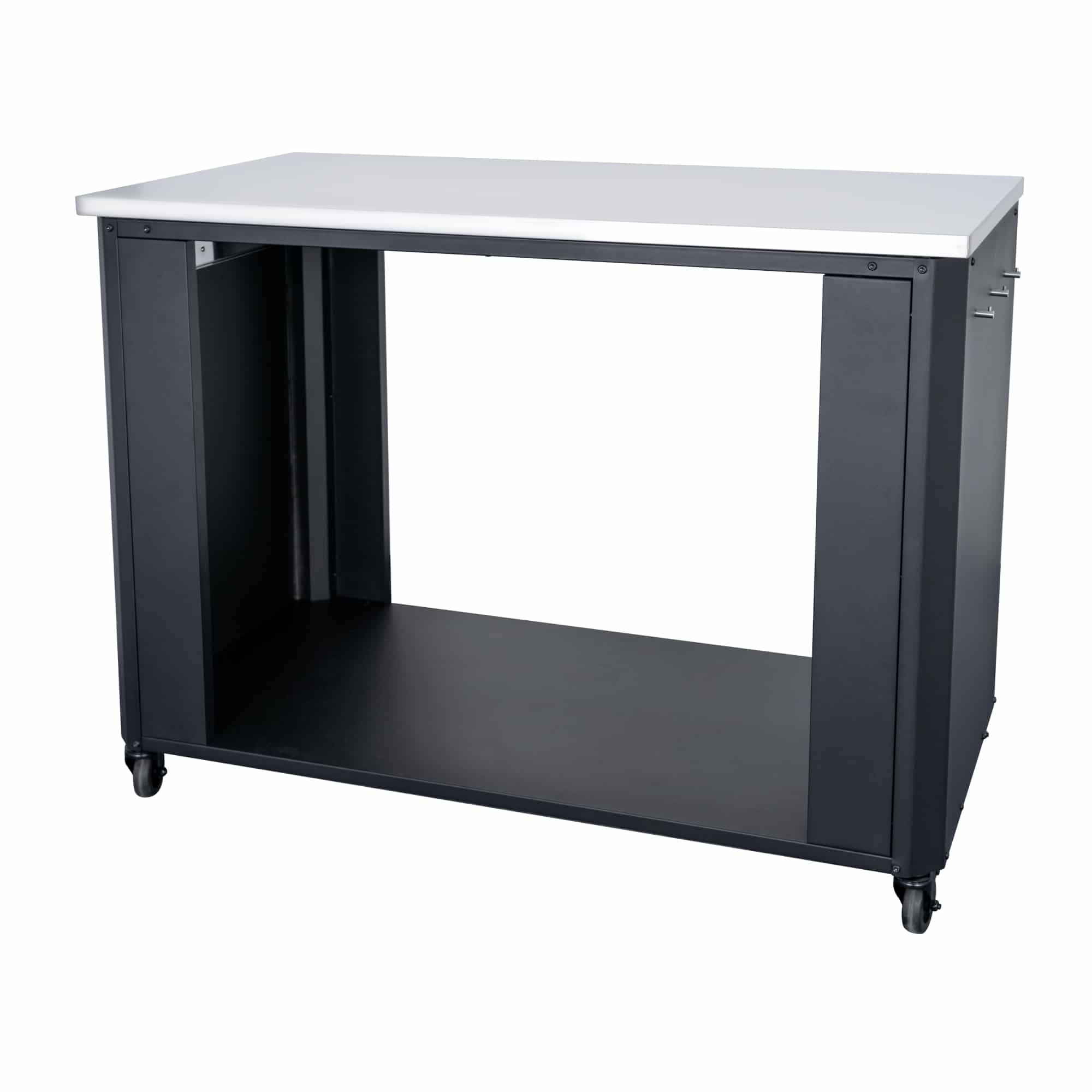 Deze module is volledig open, zonder deuren of planken, waardoor je snel en gemakkelijk bij al je benodigdheden kunt. Met vier stevige wielen met rem is de werkbank eenvoudig te verplaatsen, terwijl hij stabiel op zijn plek blijft tijdens het koken.