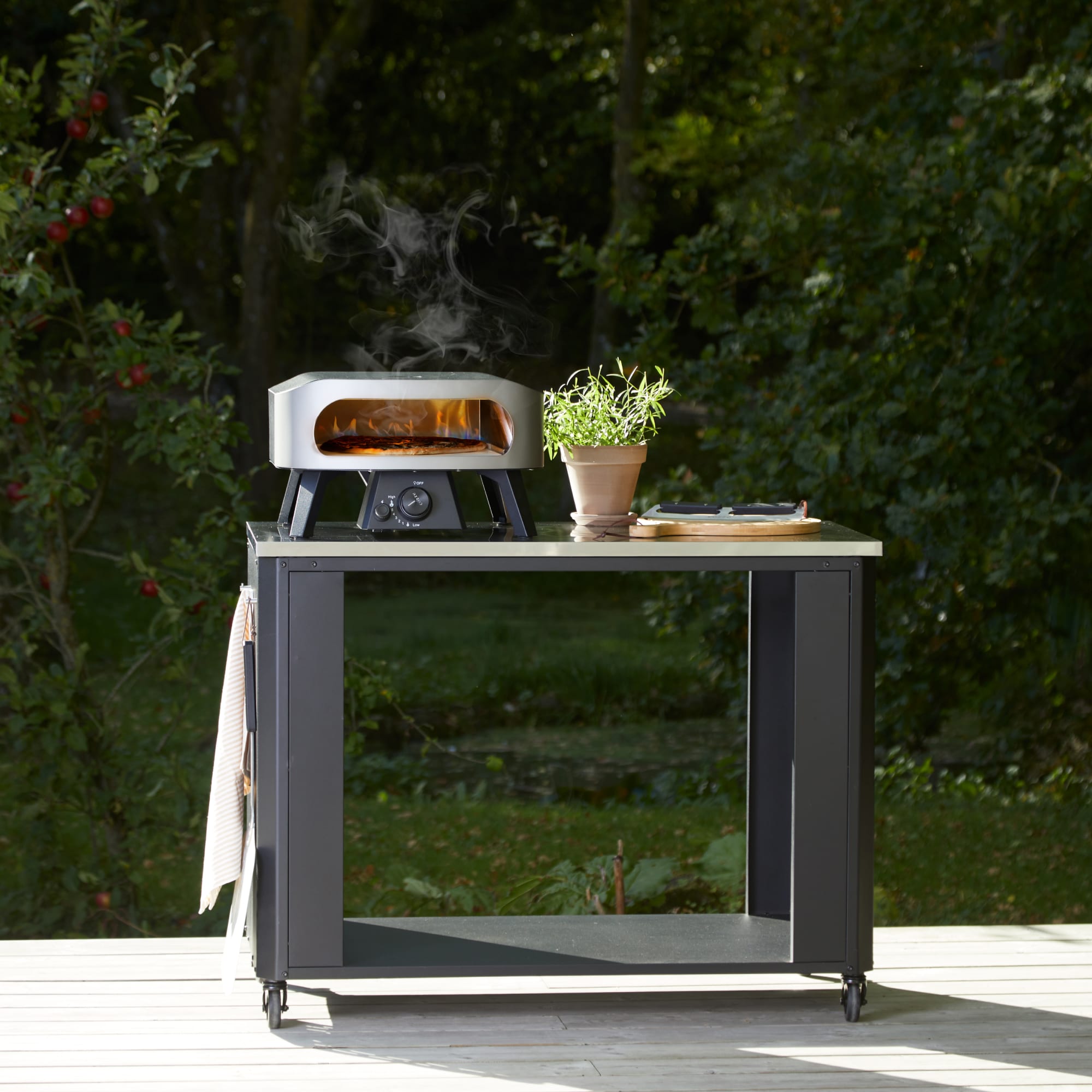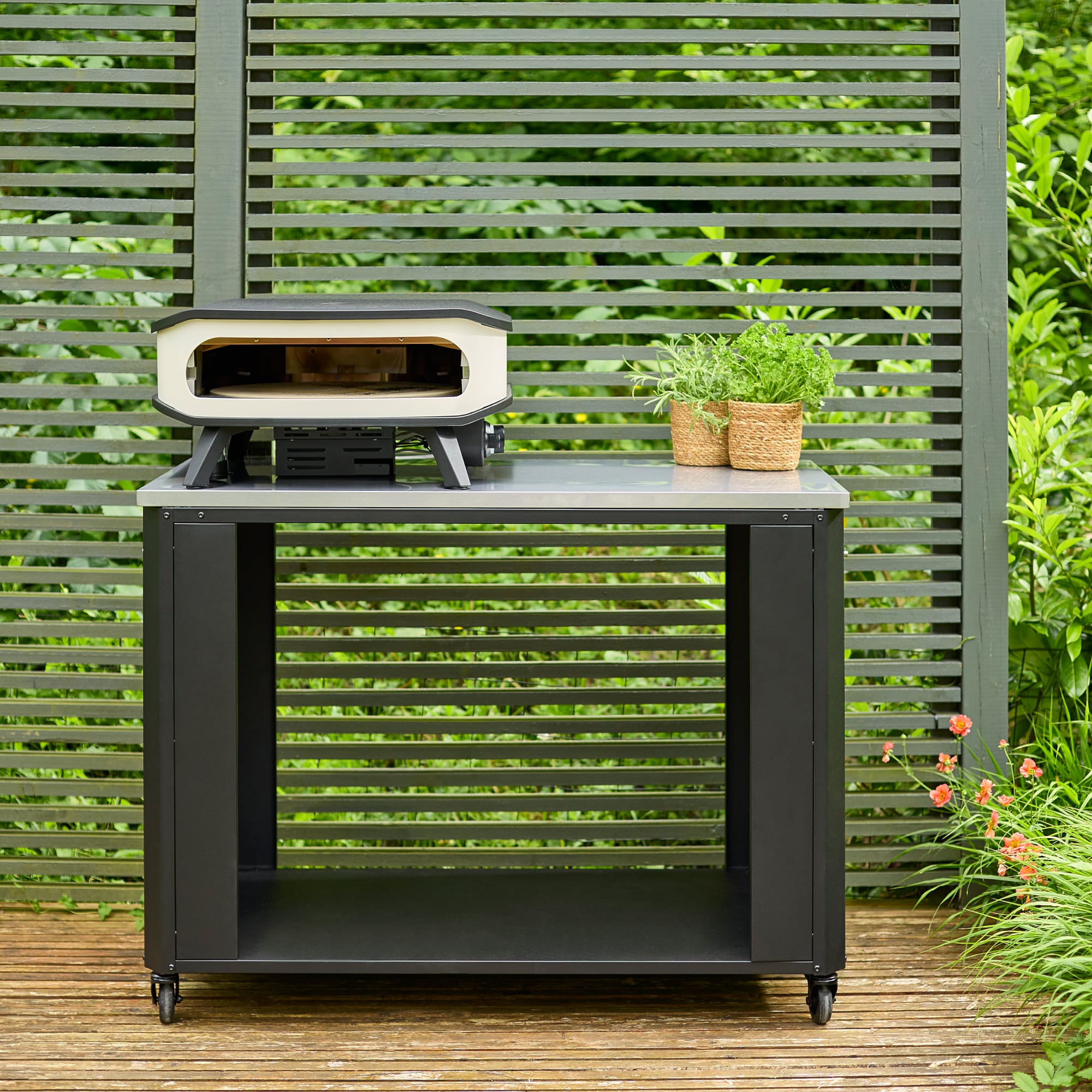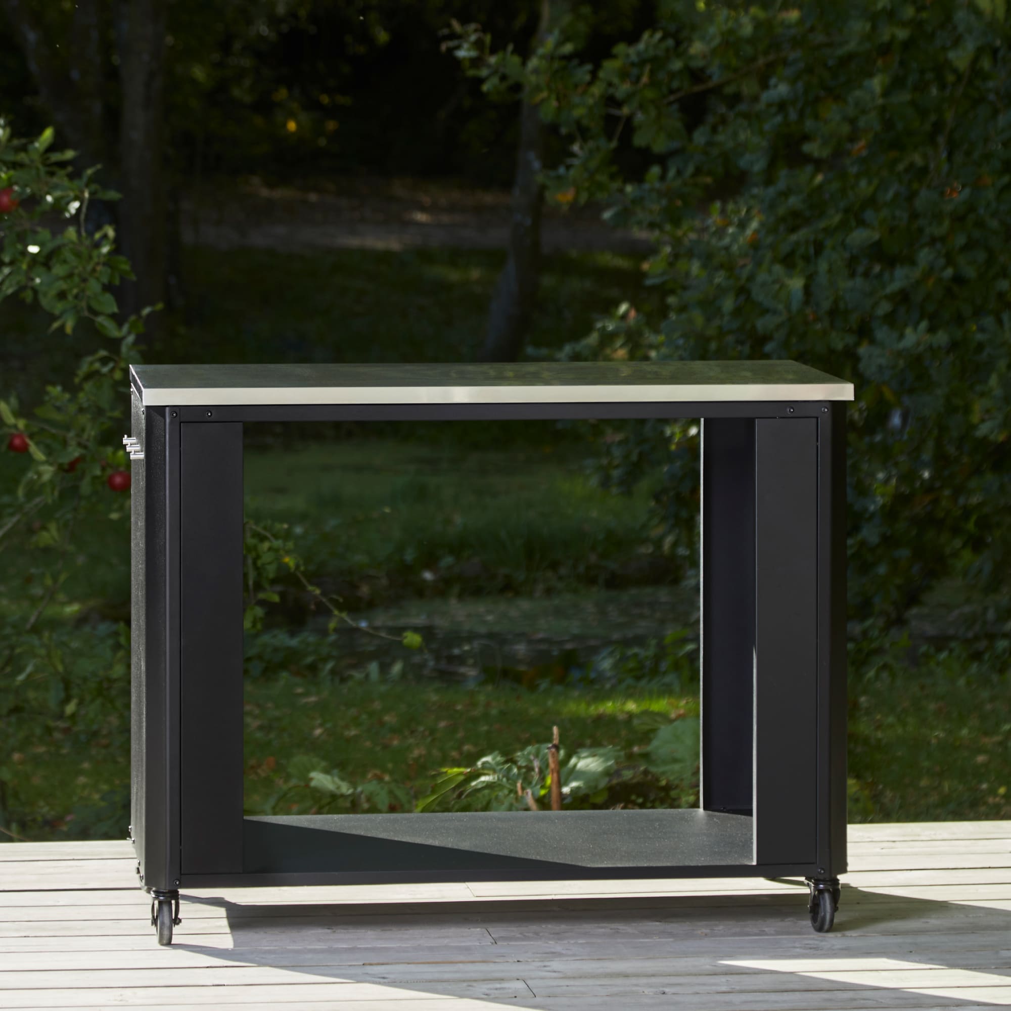 Geef je buitenkeuken extra werk- en opbergruimte met de Werkbank Open Module. Dankzij het open ontwerp plaats je eenvoudig je kookgerei, accessoires of gasfles onder je pizzaoven, plancha of grill. Met een robuust roestvrijstalen werkblad van 115 × 60 cm heb je volop ruimte om comfortabel te koken en voorbereidingen te treffen.