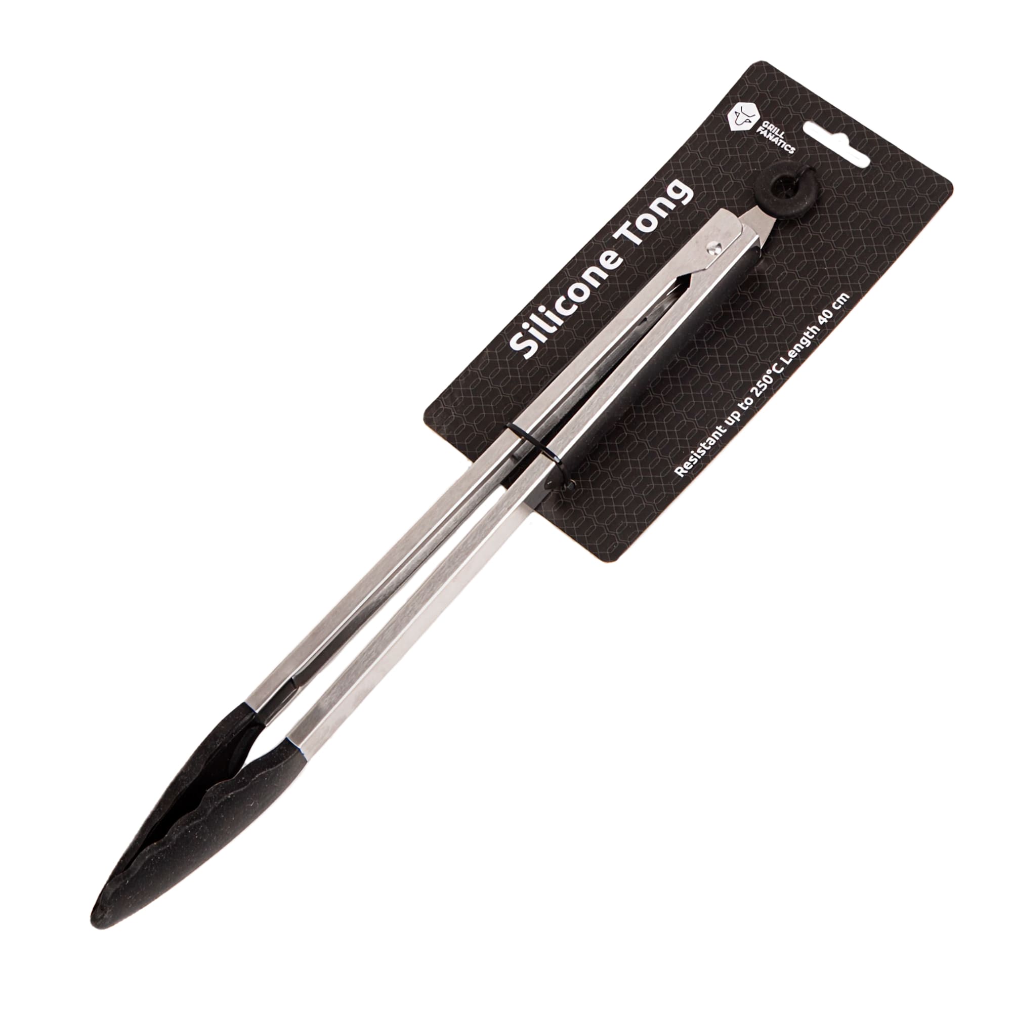 De Grill Fanatics Siliconen Tang van 40 cm is een vaste waarde naast elke BBQ. Het roestvrij stalen frame geeft stevigheid en controle, terwijl de hittebestendige siliconen uiteinden (tot 250°C) je vlees, vis en groenten zonder beschadiging oppakken en draaien. De lengte van 40 cm houdt je handen op veilige afstand van de hittebron.