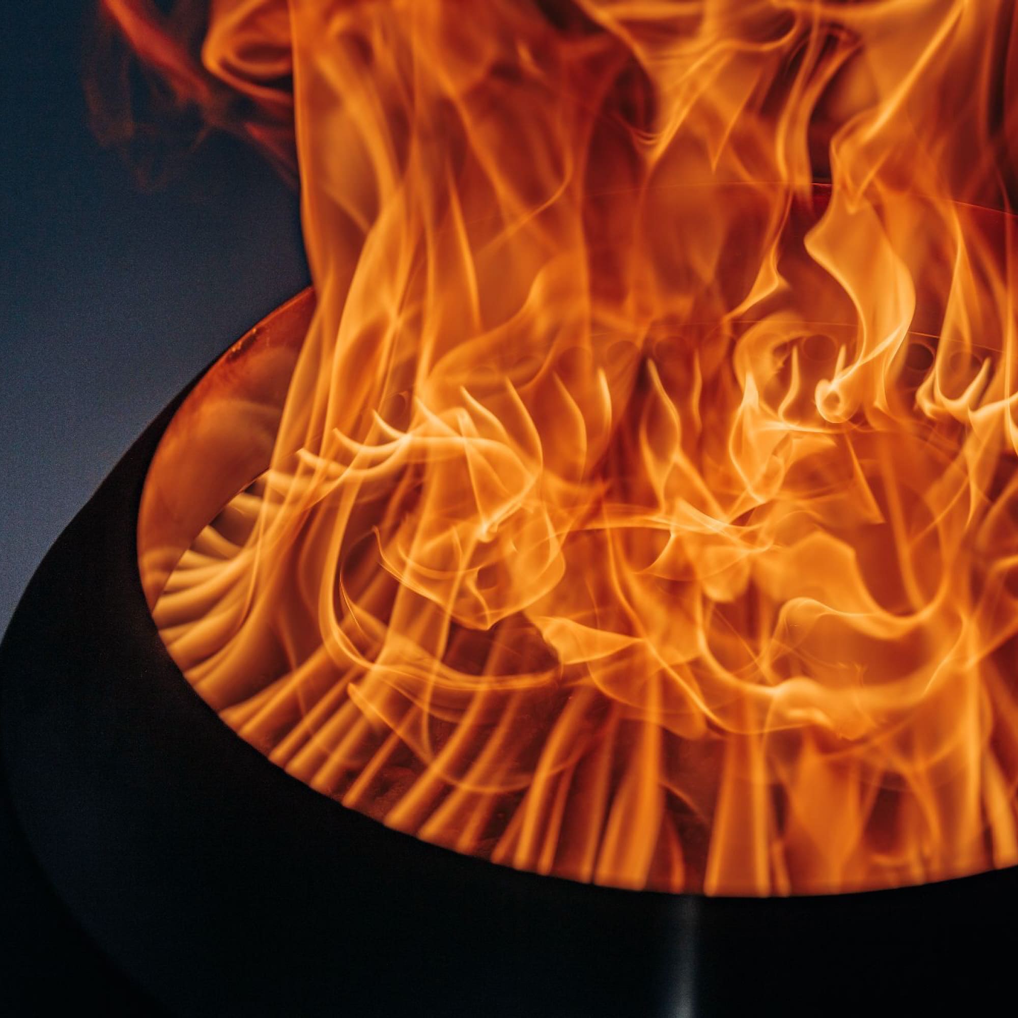 De tweestaps verbranding in de dubbele wand zorgt voor een ongekende vuurervaring. Lucht wordt voorverwarmd in de wand en stijgt op, waardoor zelfs de kleinste houtdeeltjes verbranden in de secundaire vlammen. Dit resulteert in een prachtig vlammenspel zonder rook, ideaal voor lange avonden buiten.
