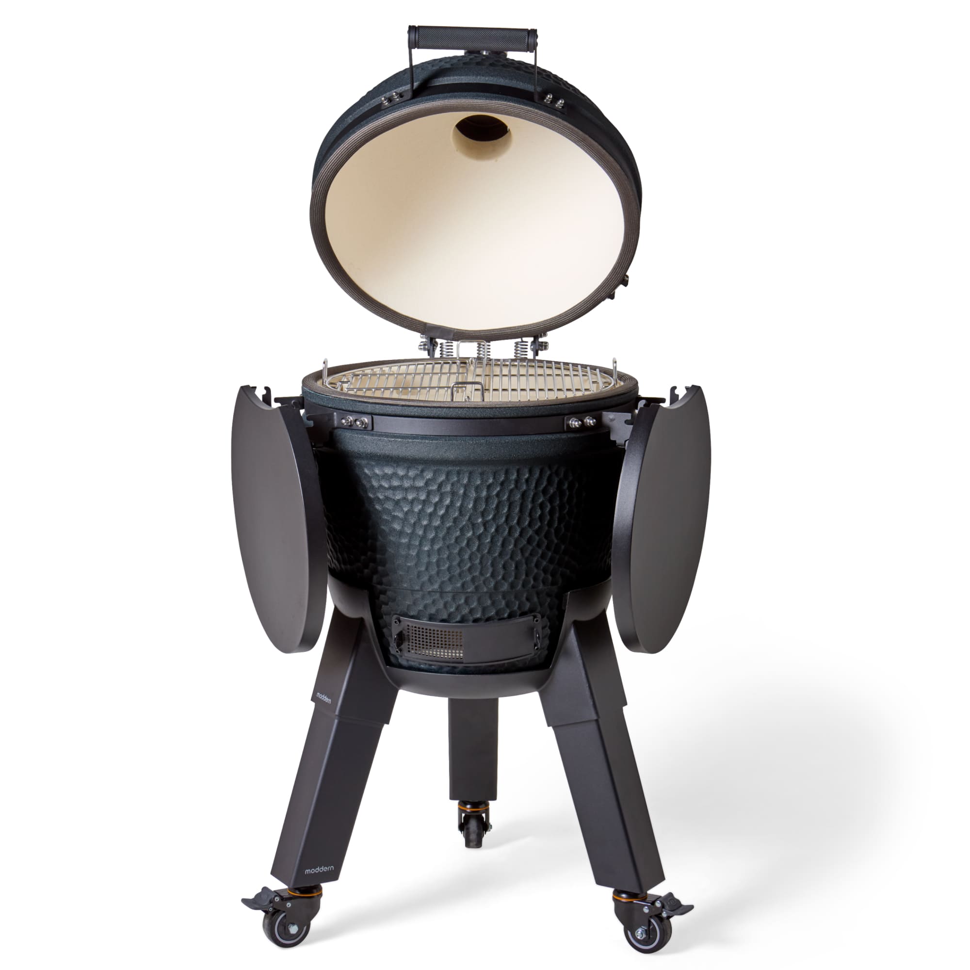 De Moddern Kamado Royal Blue Complete is vervaardigd uit hoogwaardig keramiek en biedt uitstekende warmteopslag en een gelijkmatige warmteverdeling. Hierdoor schakel je moeiteloos tussen low & slow bereidingen en koken op hoge temperatuur. Denk aan langzaam gegaarde ribs en stoofstukken, maar ook aan het grillen van steaks, vis en groenten.