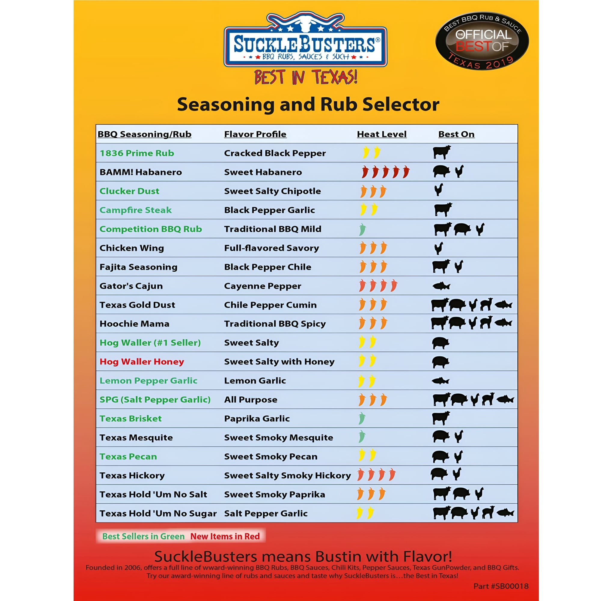 Afkomstig van het bekroonde merk SuckleBusters – Best in Texas, staat deze rub bekend om zijn perfecte balans tussen zeezout, bruine suiker en milde chilipepers. Het resultaat? Een onweerstaanbare smaakexplosie met een sappige bite en een goudbruine korst vol karakter.