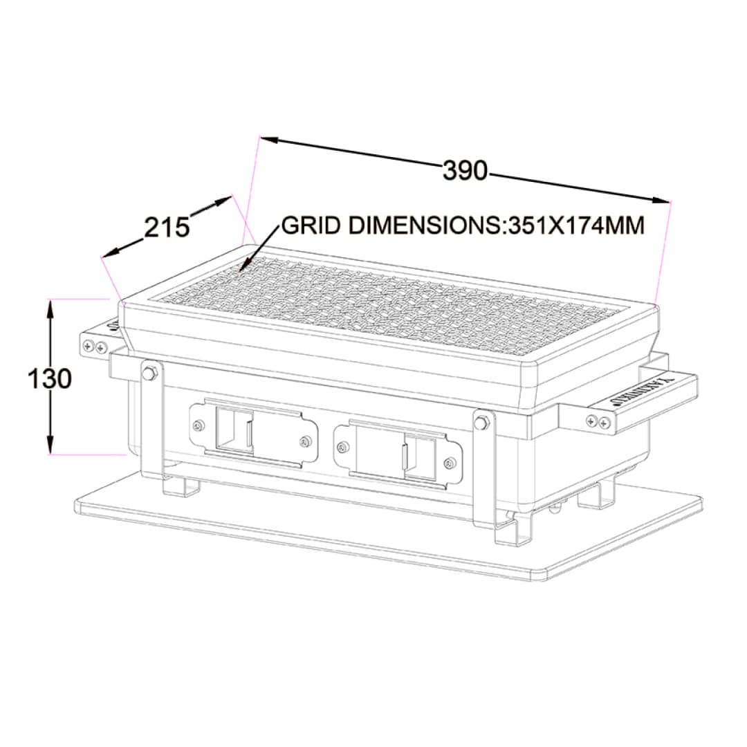 - Compact en praktisch ontwerp: De grill heeft een rechthoekige vorm en afmetingen van 320 x 515 x 195 mm. Hierdoor past hij perfect op elke tafel en is hij gemakkelijk te verplaatsen en op te bergen. De meegeleverde bamboe onderzetter beschermt je tafeloppervlak, terwijl het draagbare onderstel zorgt voor stabiliteit en flexibiliteit.